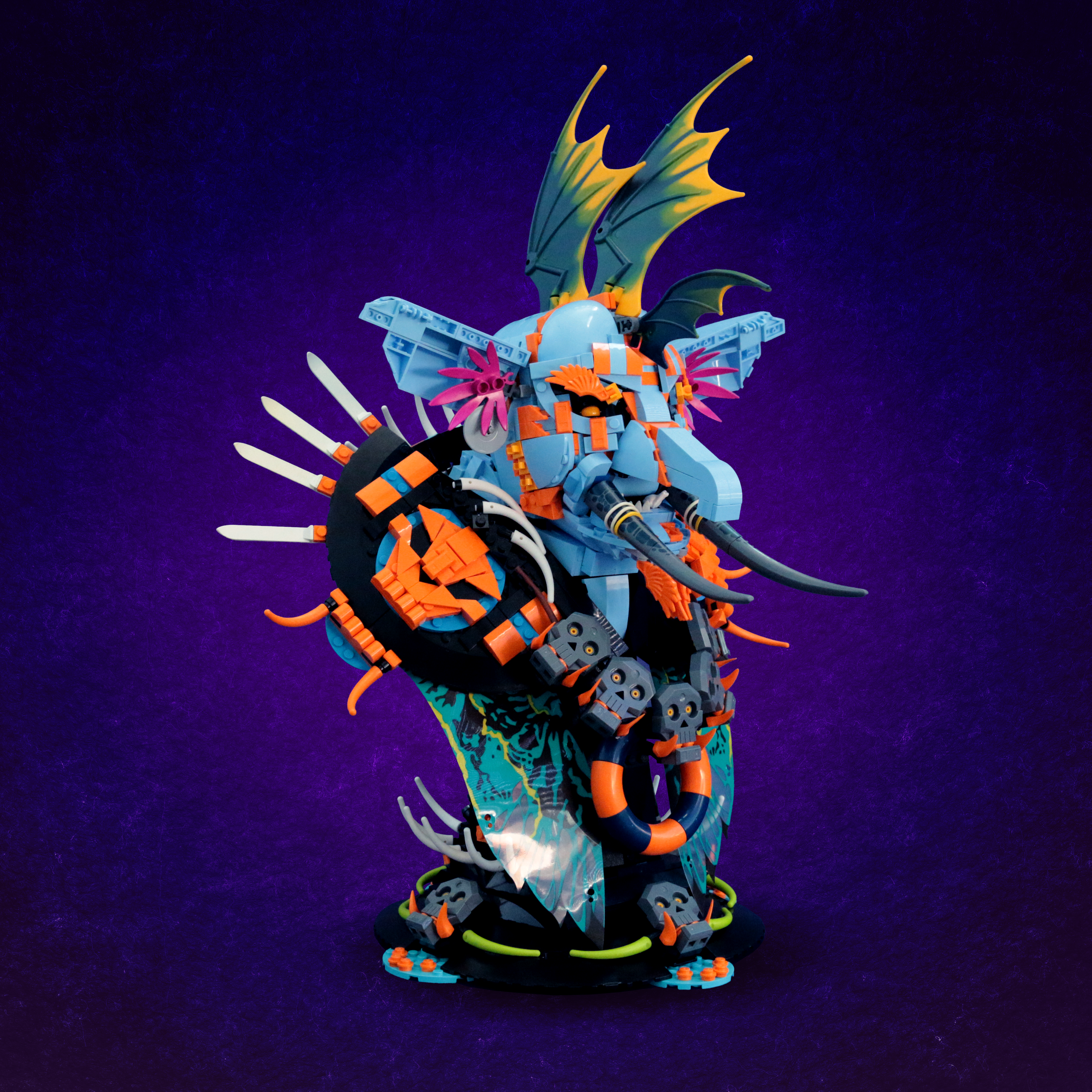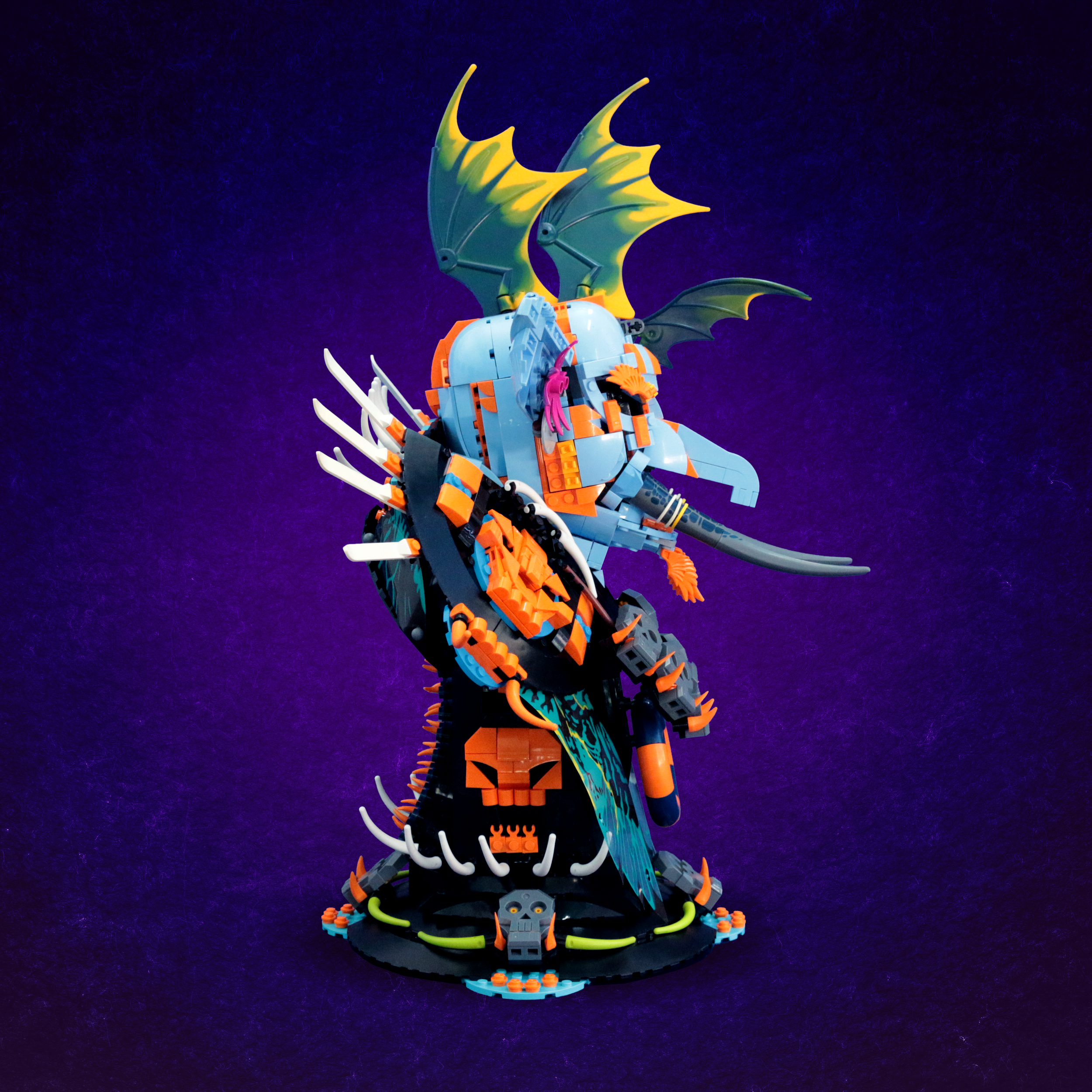 Back in 2022 I made my first troll bust. Two years later I'm at it again with a new troll bust. While at Brickworld Chicago this year I bought the Vespa Lego set because I liked the unique light blue color (of which I had none in my collection). The unique color and limited parts from it made creating the troll a fun challenge. I also got to use the Avatar wings, dinosaur tails as tusks, white frogs as teeth, a bunch of the skull pieces, and many other weird and fun parts to make up this colorful bust. I hope you like it!